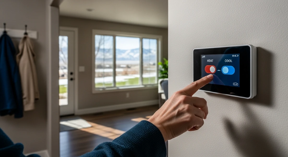 Use natural ventilation when outdoor temps are between 55�F and 75�F�just open your windows. Run heat when it’s below 60�F outside. Run central air when it’s above 75�F and rising. For more detailed guidance on navigating Utah’s spring temperature swings, check out our spring thermostat settings guide.