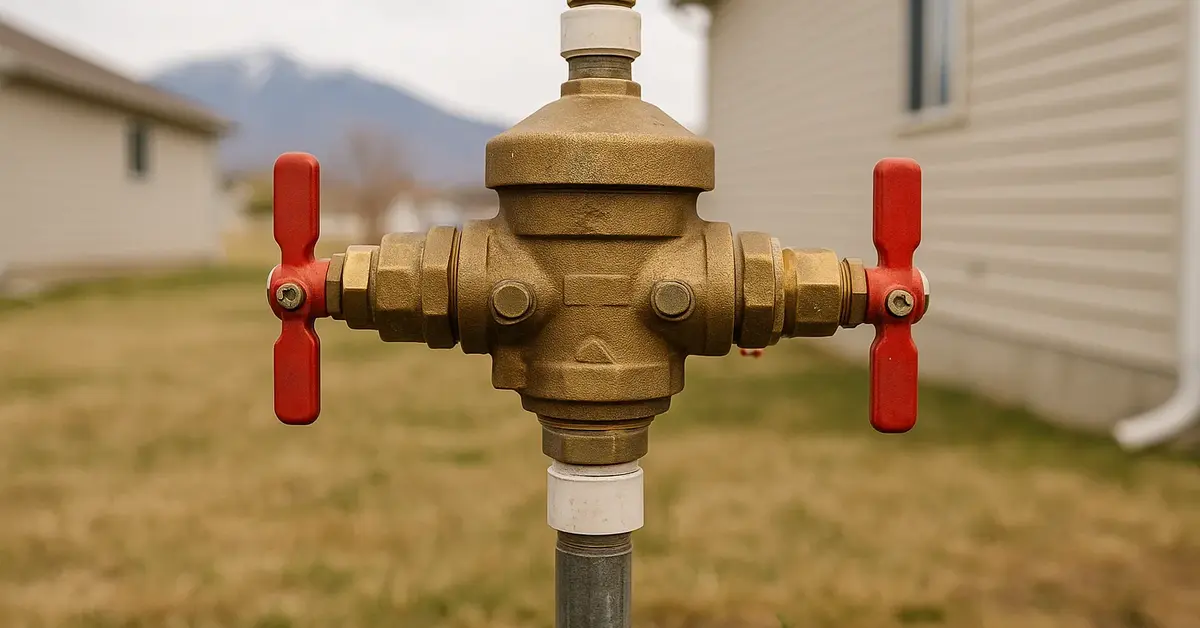 A backflow preventer stops irrigation water from flowing backward into your home’s drinking water supply. Utah Code 19-4-112 requires one on every system connected to culinary water, and it must be tested annually by a state-certified tester.